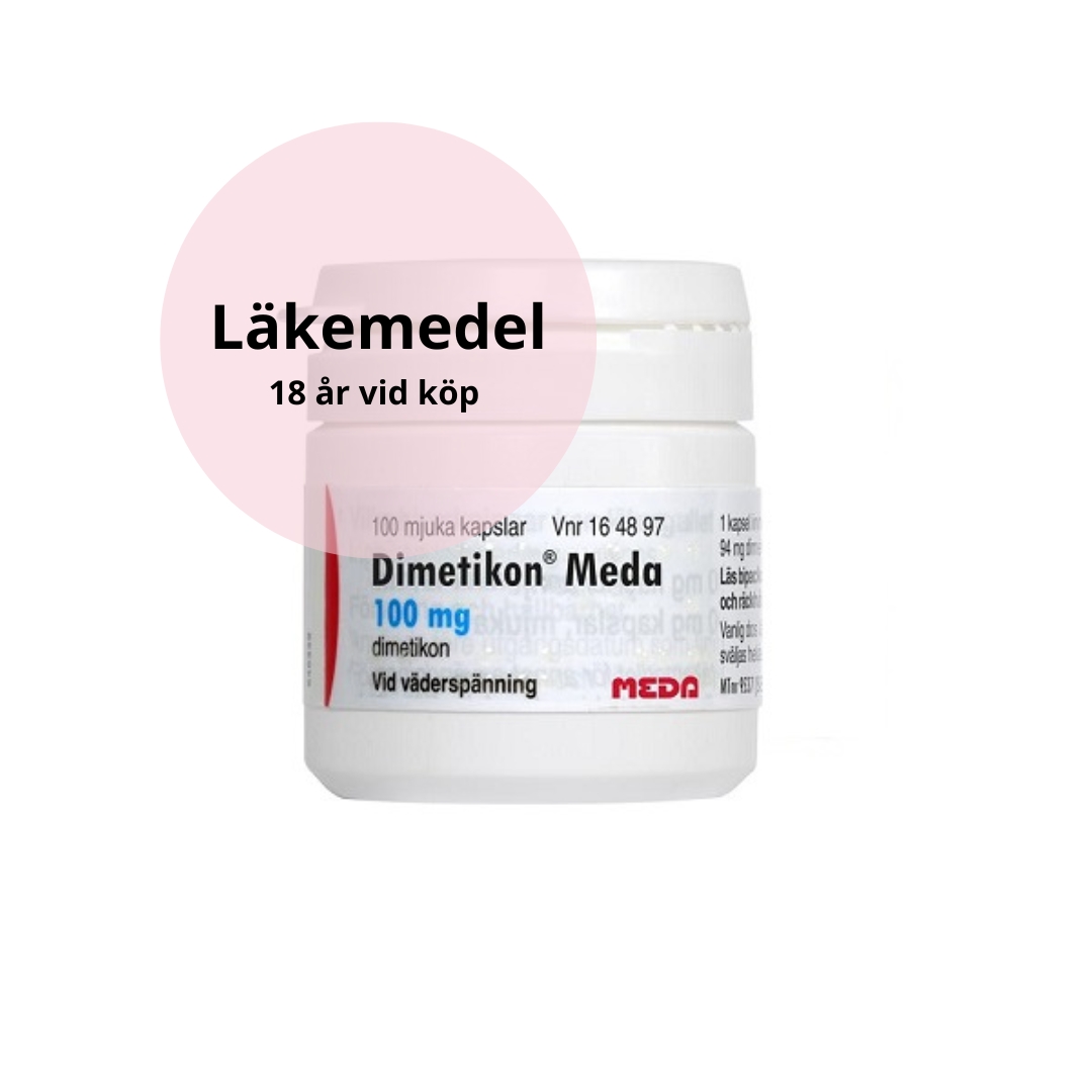 Dimetikon Meda kapsel mjuk 100mg 100 st är ett receptfritt läkemedel som du använder vid väderspänning.